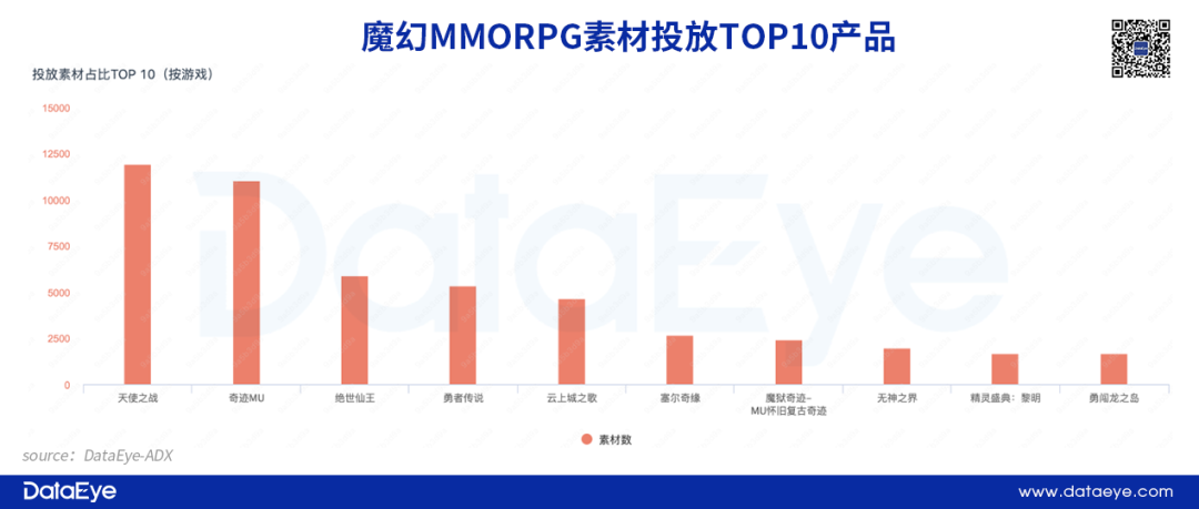 2、从投放素材创意出发:围绕三大要素,产出更多创意素材。根据DataEye-ADX投放数据来看,“炫酷装备”、“组队打怪”、“社交玩法”是魔幻MMORPG玩家最关注的要素。那么厂商只需围绕这三点,结合自身产品特性,在营销侧就有机会实现事半功倍的效果。