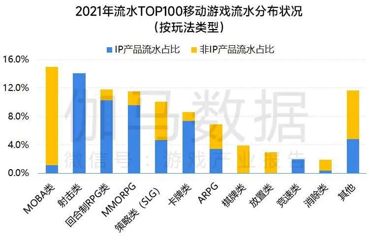伽马数据曾发布2021年流水TOP100移动游戏流水分布状况表,其中IP类产品流水占据MMORPG品类总流水的较大比例。