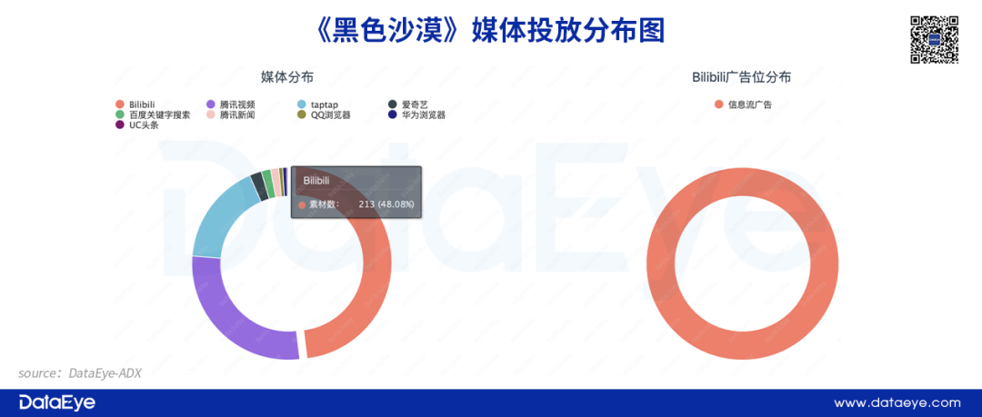 《黑色沙漠》的投放侧重在B站,在B站投放占比达到43.24%。B站用户质量较高,对于“黑色沙漠”IP更有认知度或许是《黑色沙漠》手游选择B站的原因。