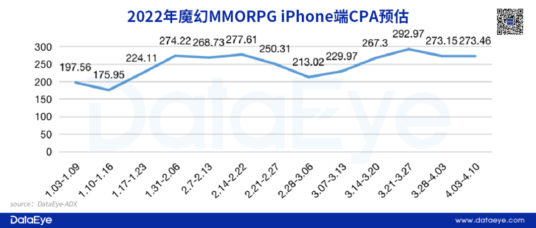 这是今年以来魔幻MMORPG买量CPA估算图,可以看到,魔幻MMORPG这个品类的买量单价在不断攀升,至今iOS用户单价已经接近300元。在买量价格居高不下的情况下,魔幻MMORPG产品的回本周期必然被拉长,甚至于直接影响到产品的盈利程度。