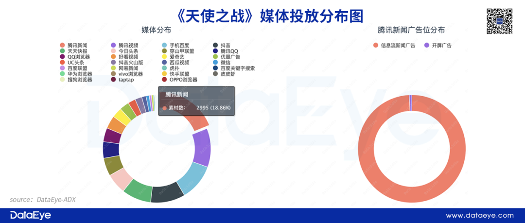 《天使之战》明显更倾向腾讯系平台,其在腾讯新闻投放比重达到18.86%。或许在恺英网络看来,字节系渠道竞争过于激烈,腾讯系存有更多的可操作空间。