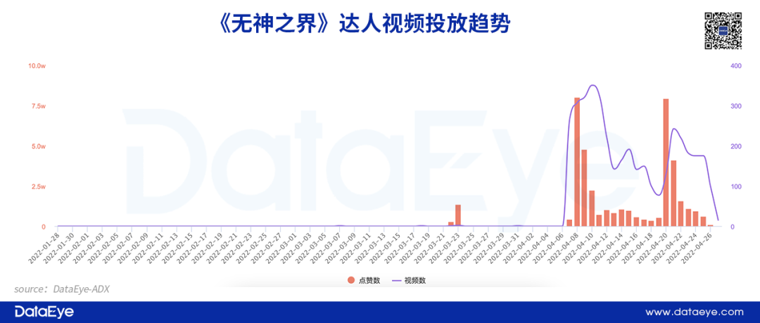 《无神之界》研发团队龙图游戏本身更熟悉传统买量的打法,并且综合其在达人视频、达人直播的投放趋势来看,达人视频的投放形式显然更契合龙图游戏的思维。
