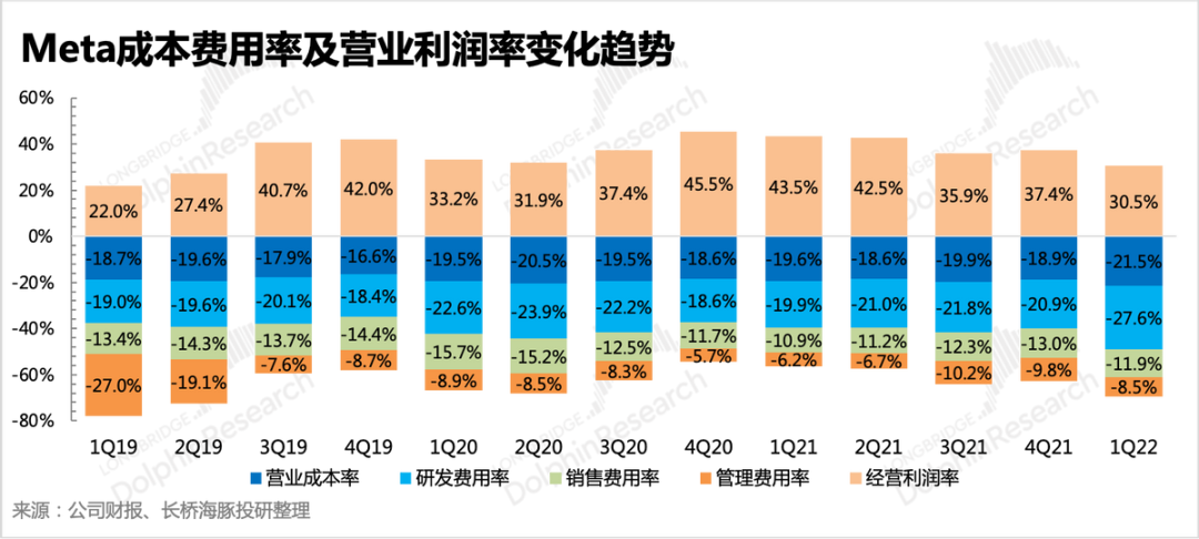 一季度实现广告收入270亿美元,同比增长6.1%,与市场预期比差3亿。如果广告贡献占比不变,按照二季度的总营收指引,估计二季度广告收入在271~291亿区间,很可能面临负增长。二季度逆风因素并不比一季度少,除了高基数,还包括通胀、战争、苹果ATT以及竞争加剧的多重影响。