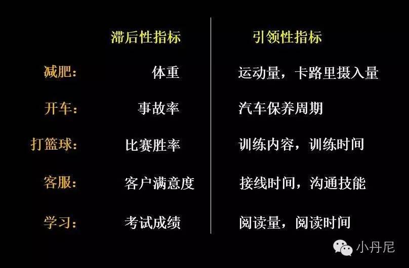 现在你应该知道需要重视“引领性指标”了,但是我们实际生活中很多事情不像减肥这件事这么简单,为了达到目标,可能很多事情都可以是“引领性指标”。