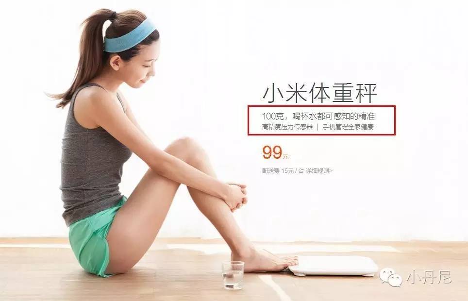 比如小米体重称秤“喝杯水都可感知的精准”: