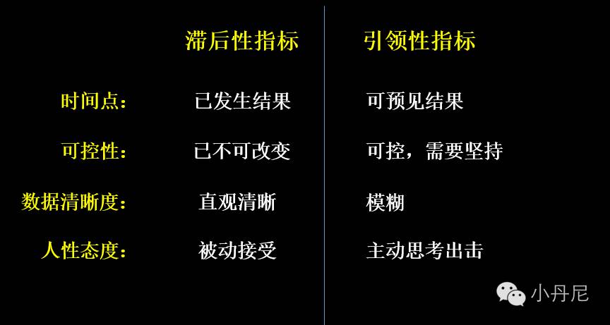 首先我们引入一个管理学概念:滞后性指标VS 引领性指标。
