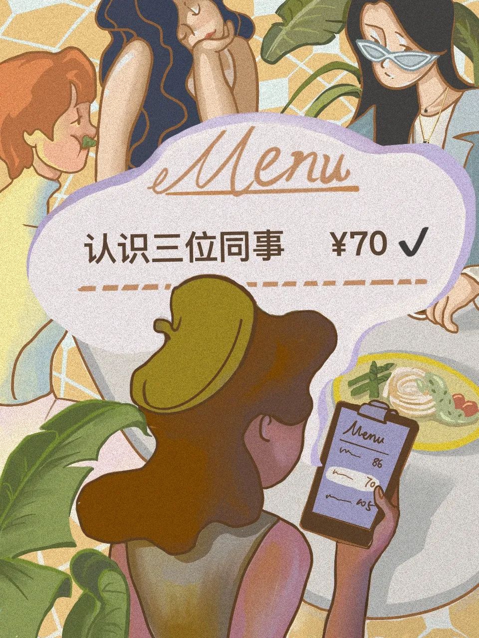曾经为了能快速融入同事,会经常一起去吃办公室楼下70块一份的轻食套餐,方法确实管用,但钱包早就紧巴巴了,所以在拥有这种快速融入集体的安全感后,她开始减少和大家的约饭频率,既能省下钱,又能维持同事关系。