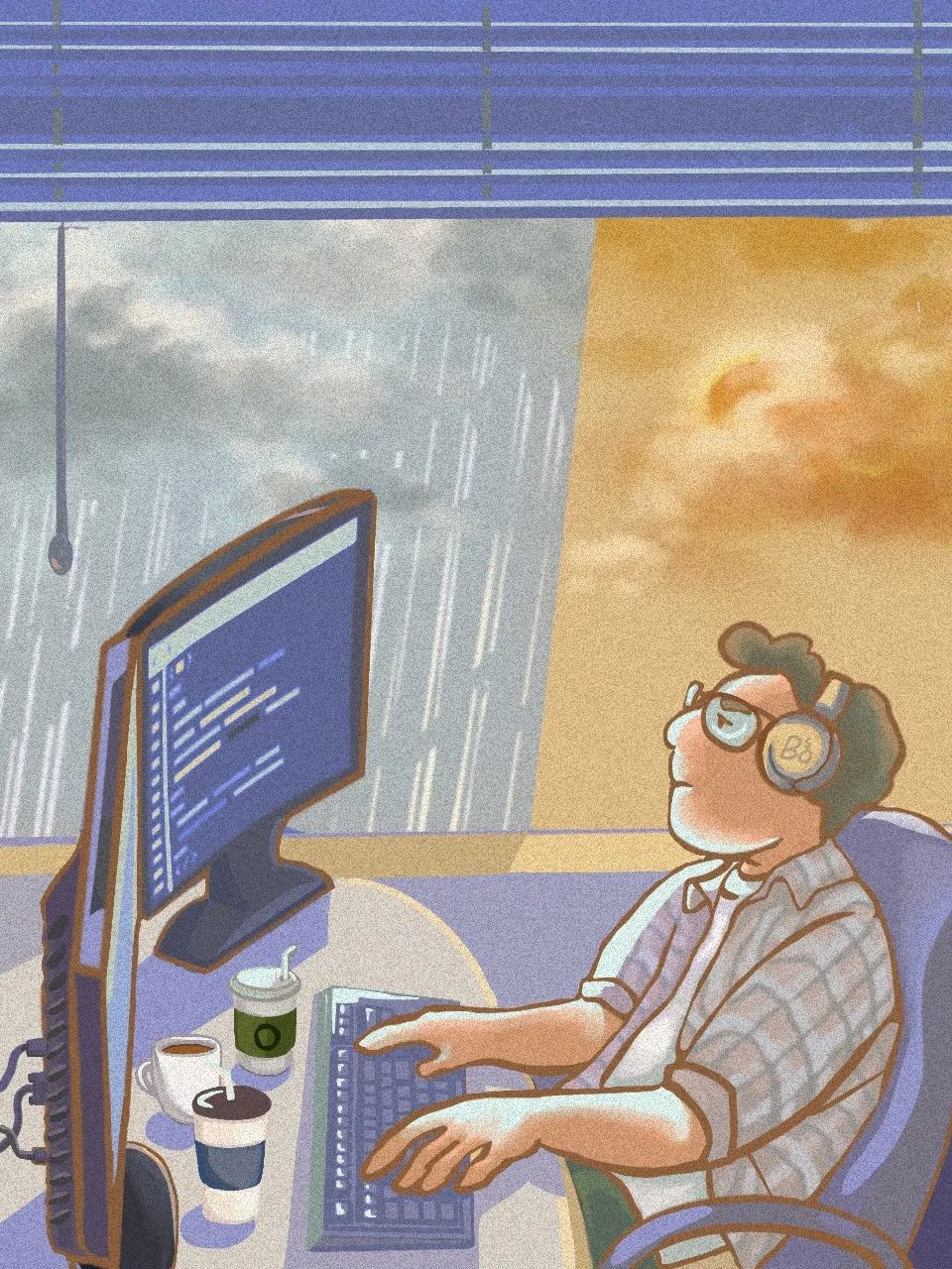 他回忆起来,自从工作开始,除了机场和车站,就几乎没再出过海淀区,因为这里就能满足自己所有生活需求,平时吃饭基本在食堂解决,对他来说食物只用来果腹,而不是取悦情绪的工具;他也很少会去主动购物,一年到头就几身固定的搭配,甚至对温度变化的感知都很差,因为常年待在办公室里,上下班的路上也都在想处理工作的事情。