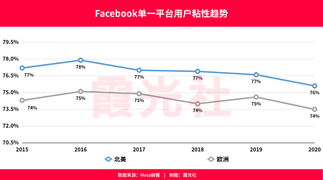 另外,人们留在Facebook上的时间也越来越短。美国用户平均每天打开Facebook的时间降至20分钟,其在欧美地区的用户粘性一直在缓慢下滑,明显受到了音视频社交产品的侵蚀。最起码,对年轻人来说,传统图文社交平台的吸引力已经越来越低了。