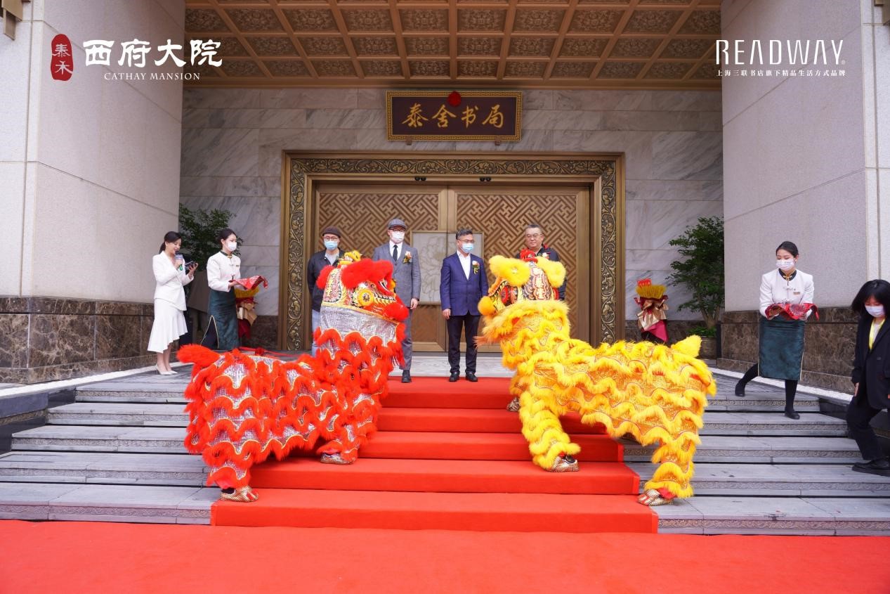 活动伊始,丰台区作协副主席石一枫、上海三联书店READWAY北京总部执行董事张宝悦、泰禾集团联席总裁王景岗及副总裁全忠共同揭匾启幕,随着大门缓缓开启,筹备已久的泰舍书局终于正式亮相。象征吉庆的舞狮表演后,张宝悦及王景岗先后代表READWAY和泰禾致辞,向泰舍书局筹建过程中给予大力支持的相关部门、领导及同仁表达衷心感谢,对书局建成的重要意义及后续运营给予充分肯定和高度期许。