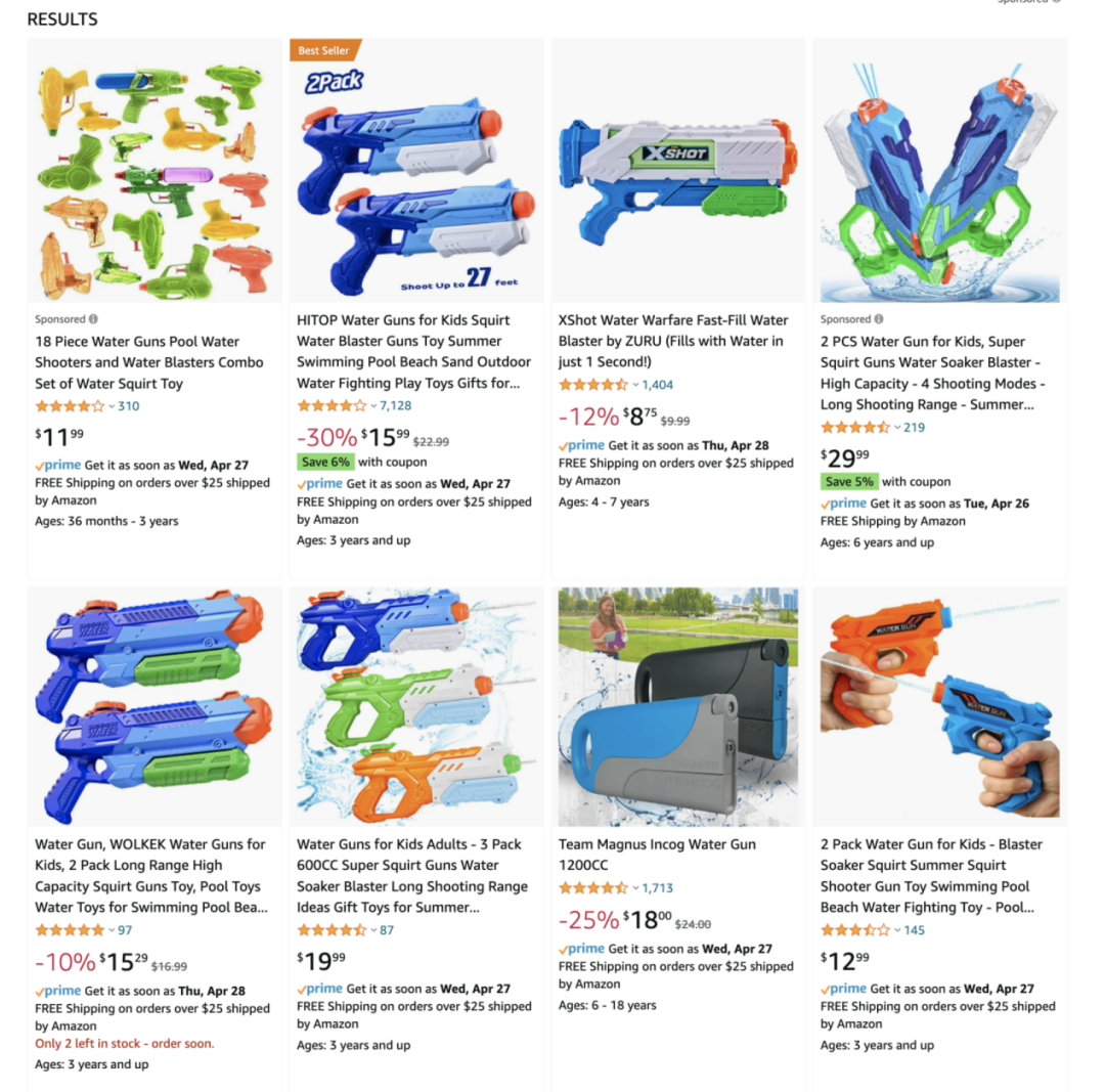 借助海关、行业和亚马逊的销售数据,Tina的团队发现美国的玩具市场天花板极高,中国的出海商家虽然多如牛毛,但还没有一个垄断性巨头,加之供应链伙伴的人脉支持,他们最终锁定了派对玩具和积木这两个细分赛道,像水枪这样的玩具,在海外有明显的消费旺季,只要拿到货就不愁销量,而积木由于成本较低、原材料单一,则是澄海玩具带长期以来具备低价优势的品类,创业初期,拿到公模产品都可以小赚一笔,因此两者都是相对具有稳定利润空间的选择。