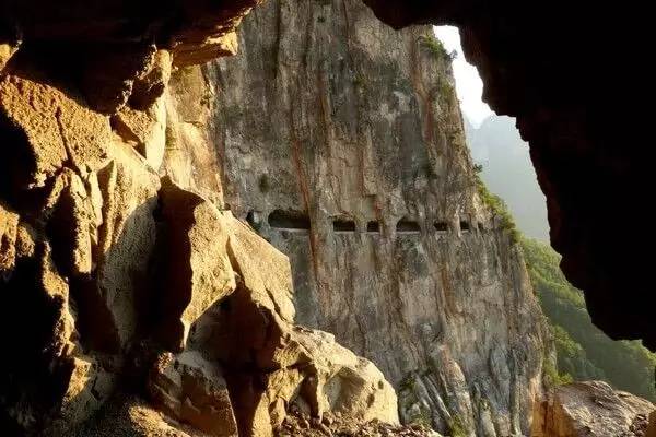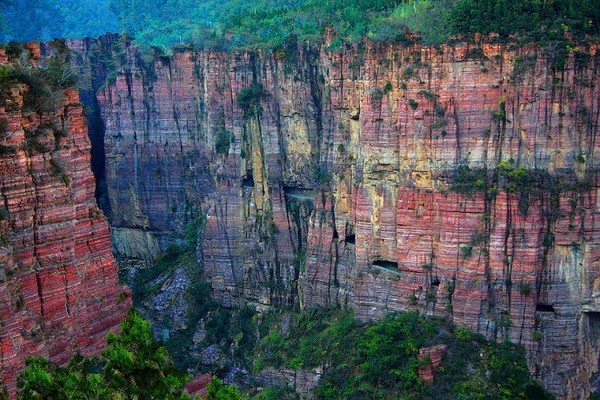 Within every 10 meters there is a window, seen from far it’s drawing the line ahead leading people out. One side is precipice, and another is formidable abyss. If you stand on the mountain there will be a clear view of Guoliang cavern road, which is like appreciating a picture suspended on the wall.