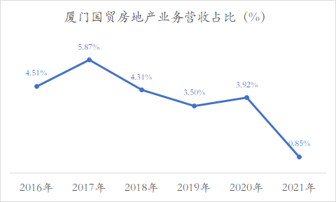 自2020年11月官宣退出房地产行业,作为厦门国贸三大核心业务之一的房地产业务营收占比已下降至不足1%。