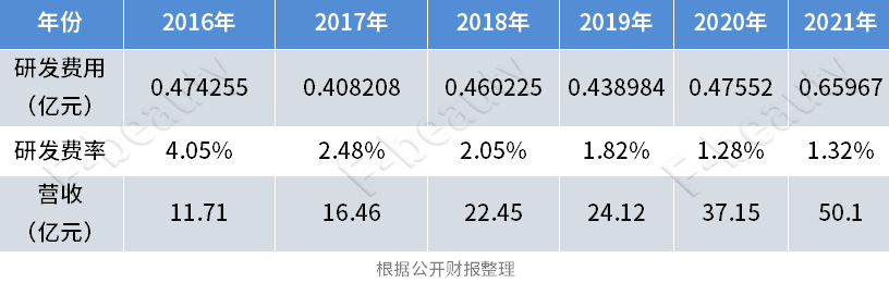 除了在数字化方面进行持续不断的投入和革新,在研发上的投入也在持续增加。据最新财报显示,该公司2021年总投入研发经费6596万元,同比增长38.7%,研发人员新增100多人,申请专利211项。