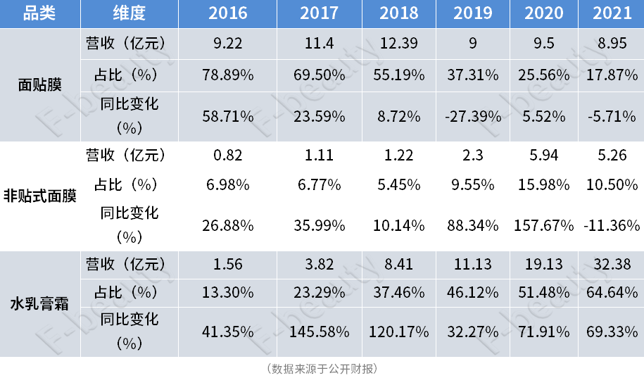 2016年,营收破10亿元,成为国内首屈一指的面膜品牌。