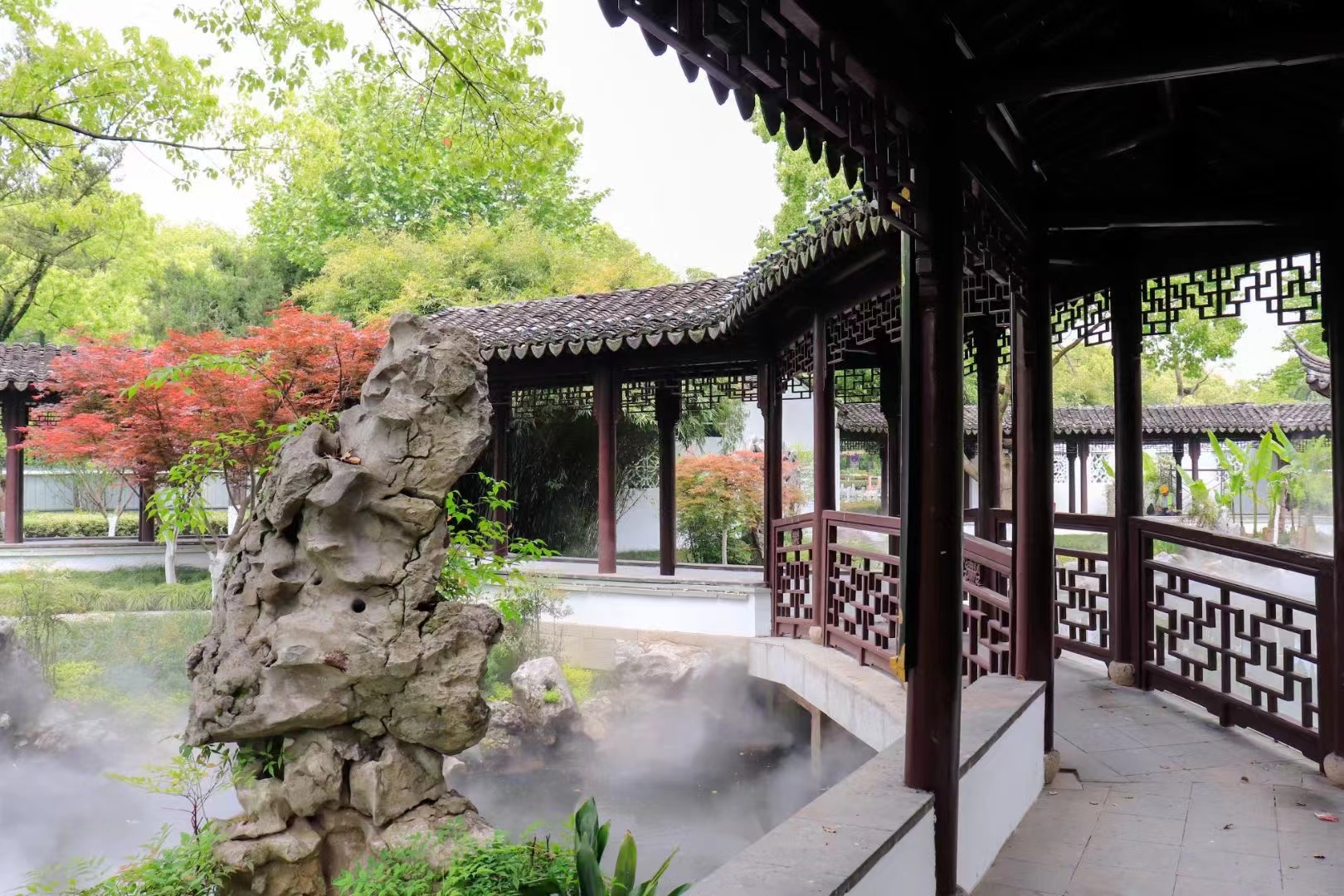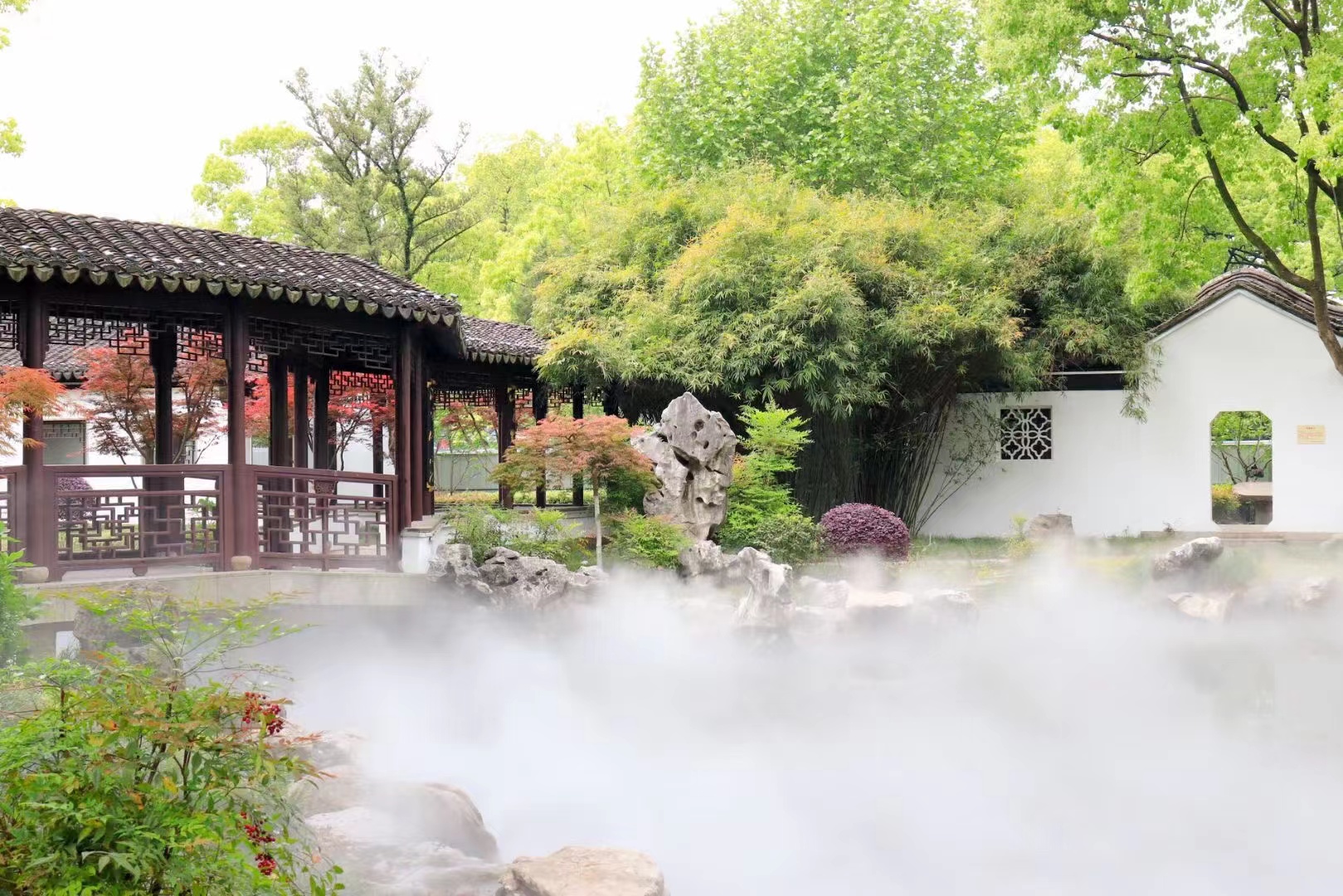 近日,如果你到月湖景区游玩,会发现景区又有了新变化!走进芳草洲,淡淡的雾气掩映人影,美不胜收,在视觉上形成一道朦胧的缓冲,让人感受到江南烟雨迷蒙的江南气韵,如临仙境般。