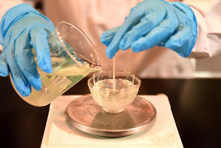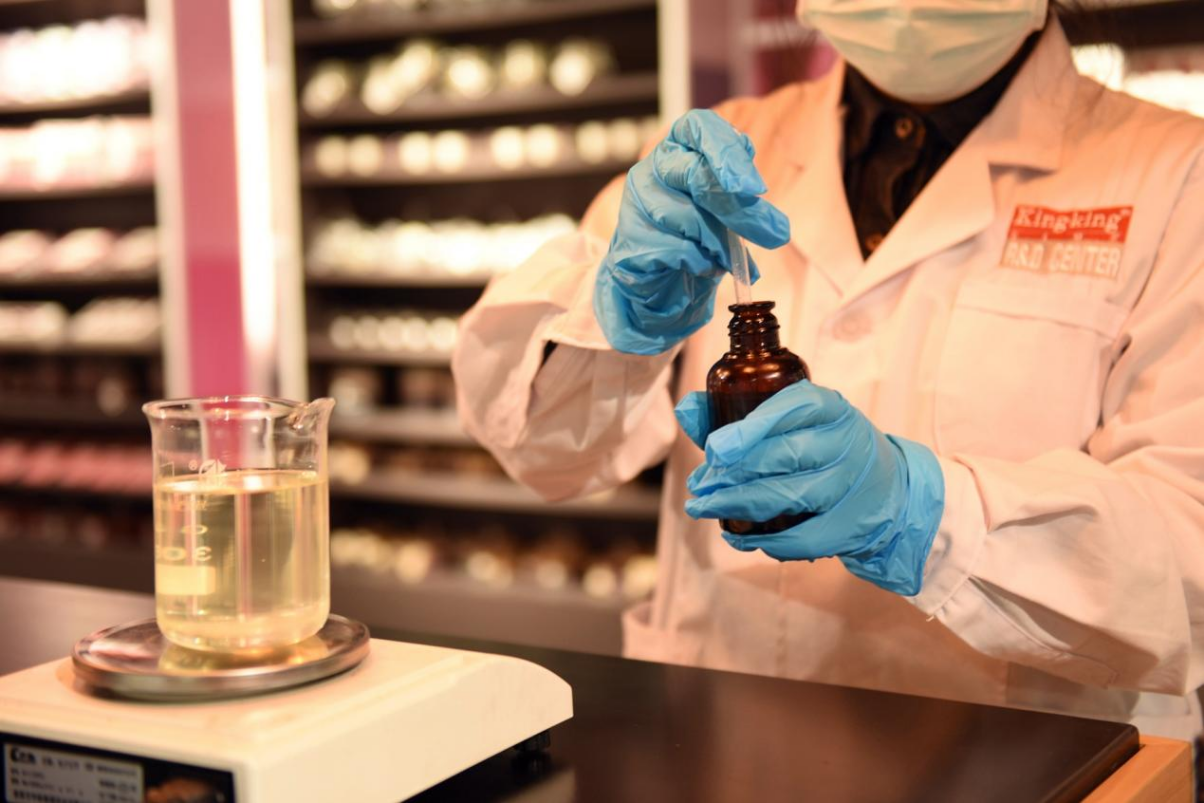 青岛金王研发中心的专家们,率先对容器做了清洗,精准测量了内壁直径与高度,随后颇有仪式感地在几个空杯、空罐中固定烛芯,并将配置好的蜡液注入其中,最终静置冷却。这些香氛蜡烛,凭借青岛金王研发的FMT速融技术,能使天然植物大豆蜡均匀融化,香精可以更均匀、更快速的释放。