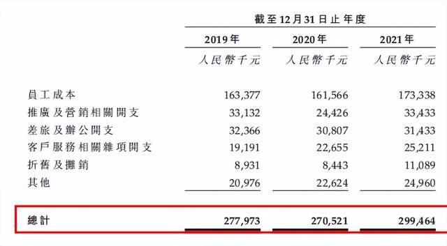 招股书显示, 2019年至2021年,美丽田园的开支分别为2.78亿、2.71亿、2.99亿,其中主要是员工成本,具体包括内部销售及营销团队的工资、福利及花红。