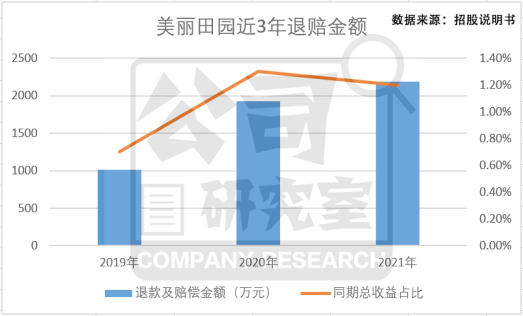 除了经营中违规被处罚,服务纠纷或手术事故也导致美丽田园每年退赔金额上千万元。招股书披露了公司近3年退款及赔偿情况,2019年、2020年及2021年,美丽田园向客户作出的退款及赔偿总额分别约为人民币1010万元、人民币1930万元及人民币2190万元,分别占同期总收益约0.7%、1.3%及1.2%。