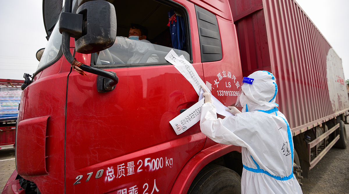 受困于路途中的各种限制,部分司机不愿继续拉货,选择回家休息。但因为他们货车司机的身份,回家也成了困难。