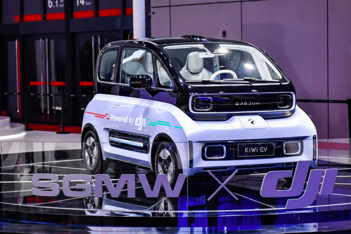 去年4月,在上海车展的宝骏展台上,除了新发布的宝骏kiwi EV 系列车型之外,一款在车身上标有“Power by DJI”的概念车型成为了众多媒体及参观人群重点关注的焦点。