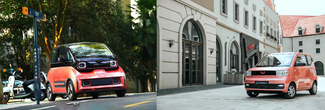 宝骏E300(左)与五菱宏光MINI EV,图源宝骏汽车/五菱汽车官微