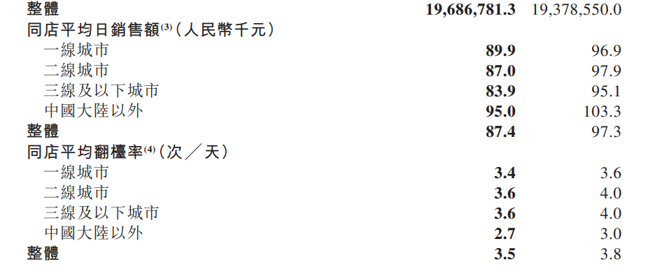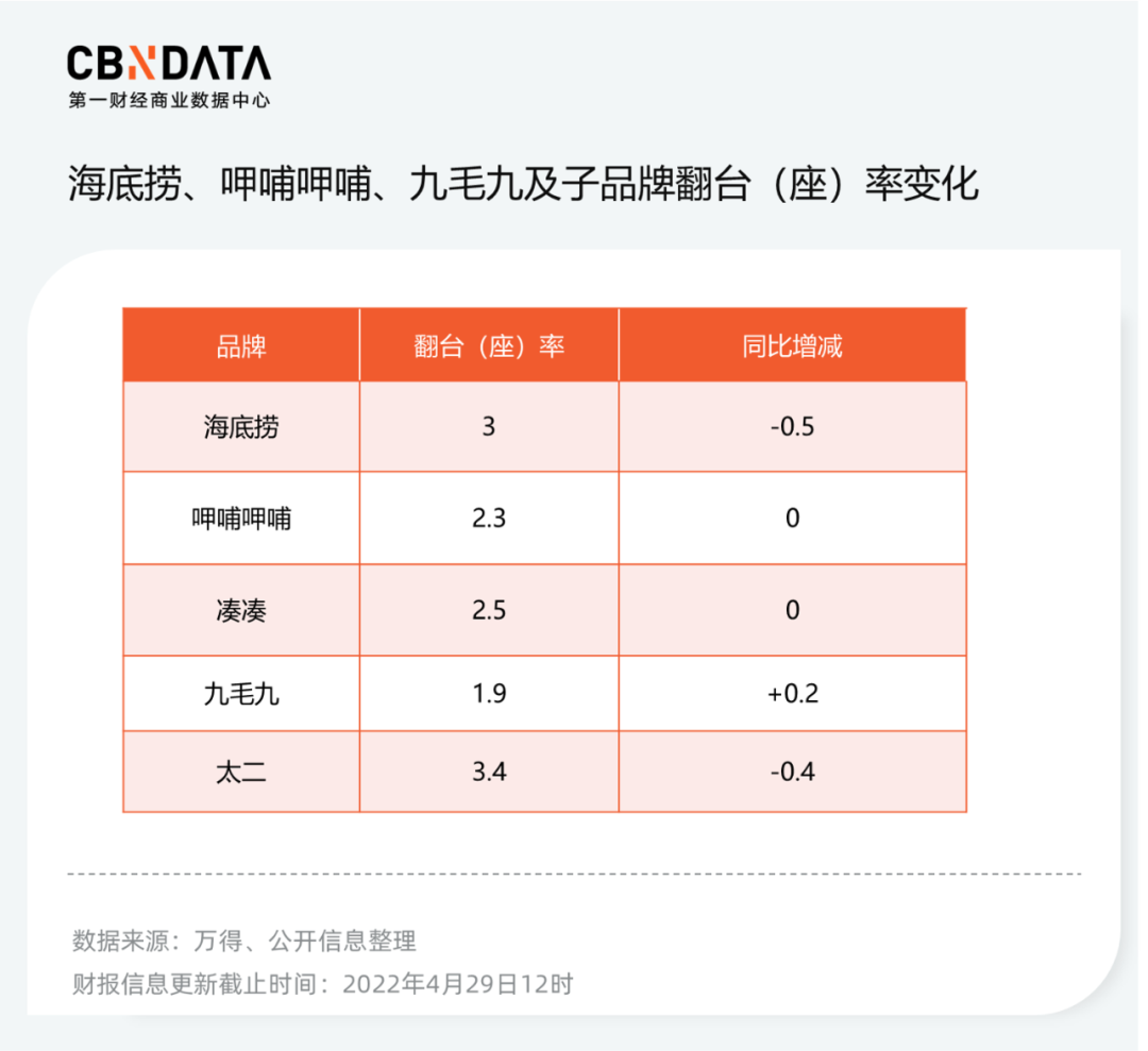 此外,在餐饮品牌中,翻台(座)率也是值得研究的一个指标: