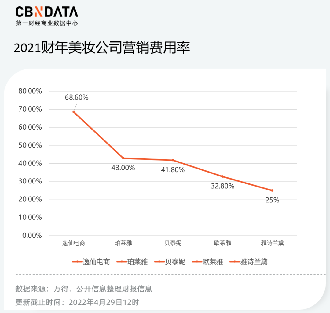 根据国泰君安提供的研报数据,逸仙电商的营销费用占比在同行中较高: