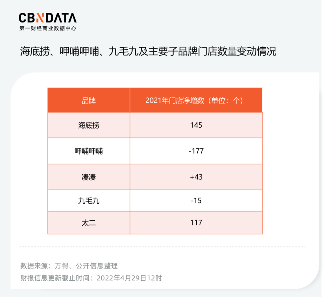 从三家企业的自救举措来看,其实都可以归结为四个字:降本增效。尽管海底捞和九毛九的门店数依然在净增,但双方同时也在对效率低的门店进行调整。