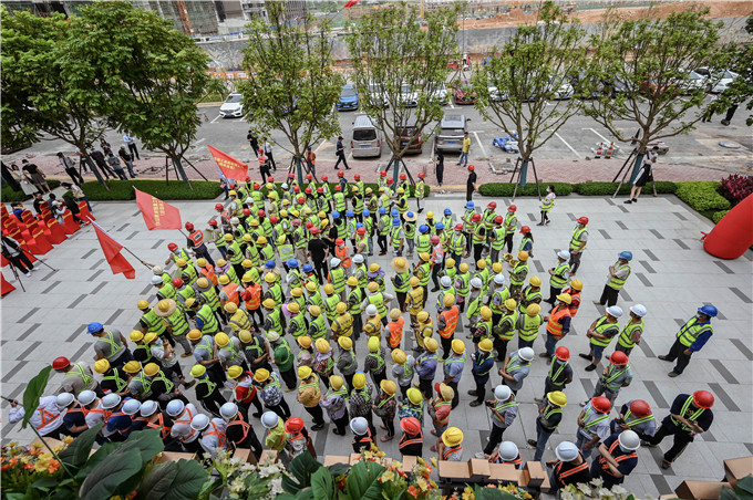 最后,为了让员工更快进入状态、明确目标,四家施工单位代表当场签署了品质工程承诺书。全体在场管理人员一起进行了庄严的宣誓:众志成城、全力以赴,坚决提升品质建设,创建南宁五象标杆工程,誓保项目工程节点及品质施工。