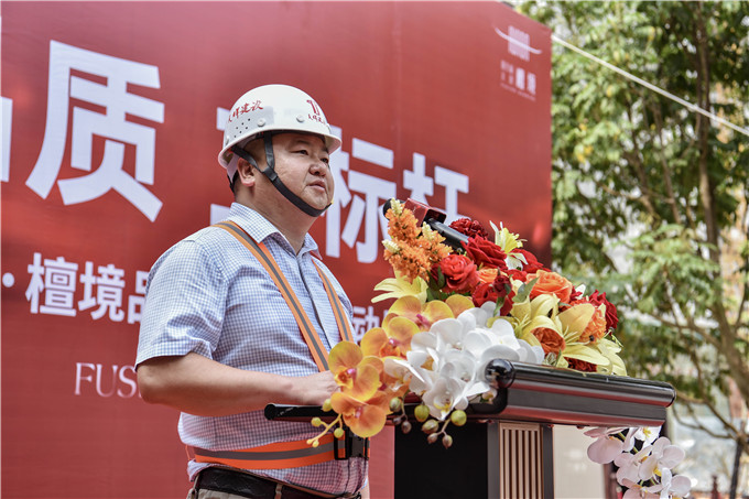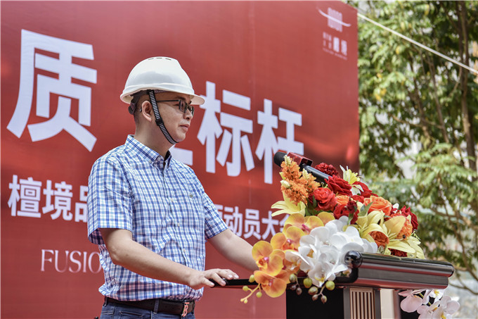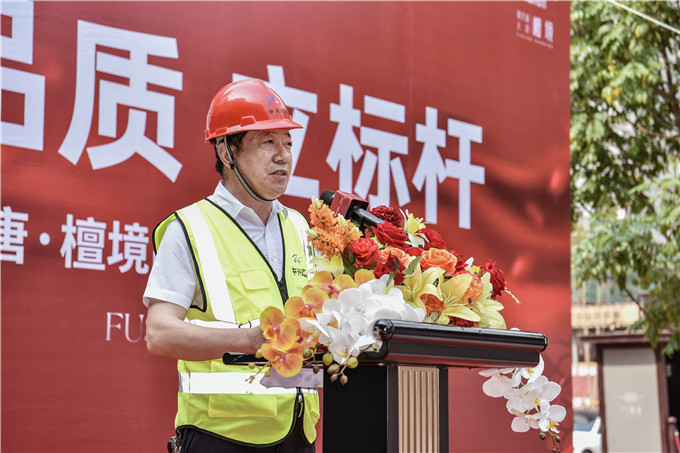 阳光城大唐·檀境项目总经理舒展先生为本次活动发表开场致辞,他表示,阳光城大唐·檀境作为阳光城与大唐双百强地产联合开发的87万方成熟标杆项目,地段优越,毗邻楞塘湖坐拥五象成熟精华配套。檀境项目自启动以来,备受各界关注,作为项目的运营者与开发者,为优化运转机制、确保项目运营,将以“提品质 立标杆”的专业精神为导向,建立更加完善的施工流程及质量安全体系,以确保工程质量、工程进度超越预期目标。同时也明确当前项目运营建设已在稳步推进中,有信心在项目全体工作人员的努力以及政府、媒体、业主等多方监管下,持续将项目打造成五象品质工程封面作品。