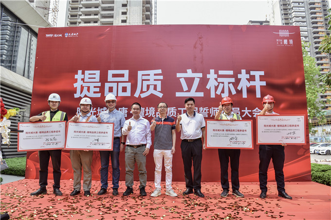 同时阳光城大唐·檀境项目工程部负责人覃宇先生也在现场宣誓表示:我宣布“提品质 立标杆”,阳光城大唐·檀境品质工程正式起航!未来我们将以更高的要求,为努力创建南宁五象标杆工程而努力奋斗!