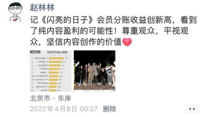 腾讯视频对于“分账综艺”的尝试更早,赵林林做的《闪亮的日子》便是之一。该节目是由腾讯视频和大千影业合作完成,同样是“小体量、小成本、会员专享”。制作公司和平台方也十分关注用户的反馈,会根据观众的想法及时调整制作。对于盈利状况,赵林林表示,“以《闪亮》为例,节目靠会员拉新以及有效播放量,是有机会实现盈利的。”
