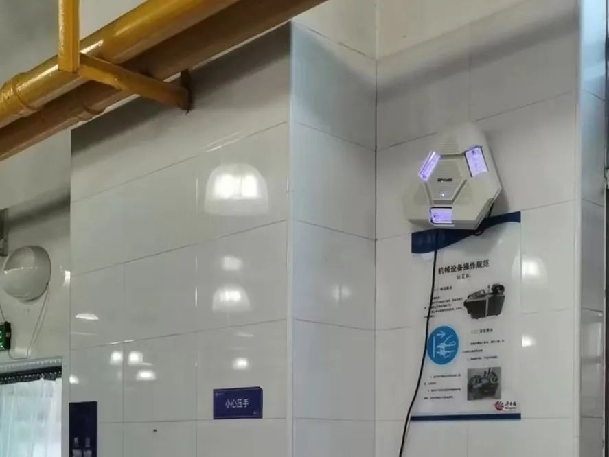 安装在食堂后厨,六边形的远紫外杀菌灯。复旦大学供图