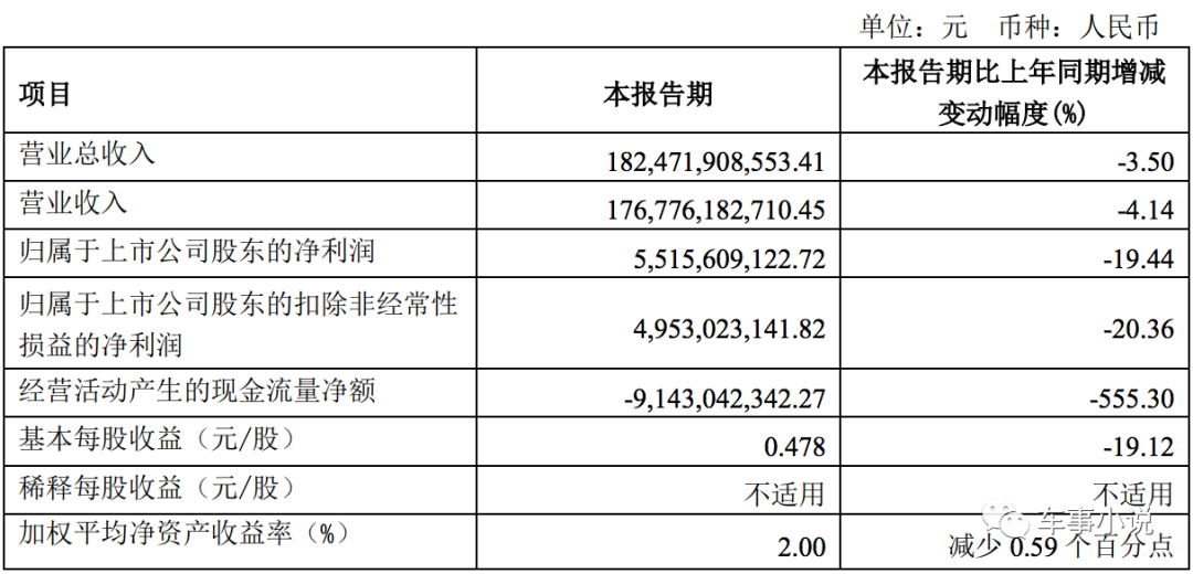据财报显示,上汽集团今年一季度实现营收1824.72亿元,同比下滑3.50%;净利润为55.16亿元,同比下滑19.44%。经营活动产生的现金流量净额为-91.43亿元,上年同期则为20.08亿元。