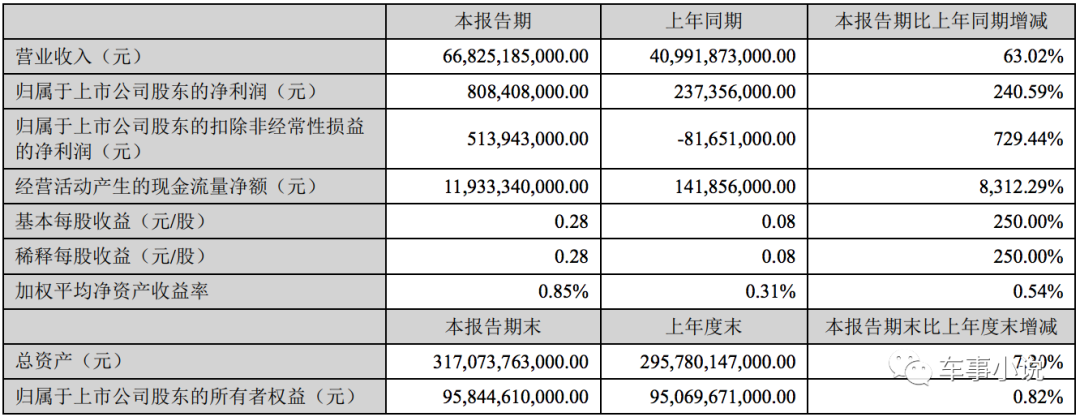 比亚迪:净利同比大涨240.59%,新能源车业务表现强劲