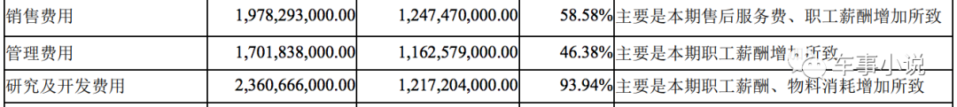 从三费支出的项目中,车事小说注意到,“职工薪酬”增加构成了销售费用和研发费用的主要原因。这也表明,随着新能源汽车业务的不断向好,比亚迪对于旗下员工薪酬待遇也进行了提升。