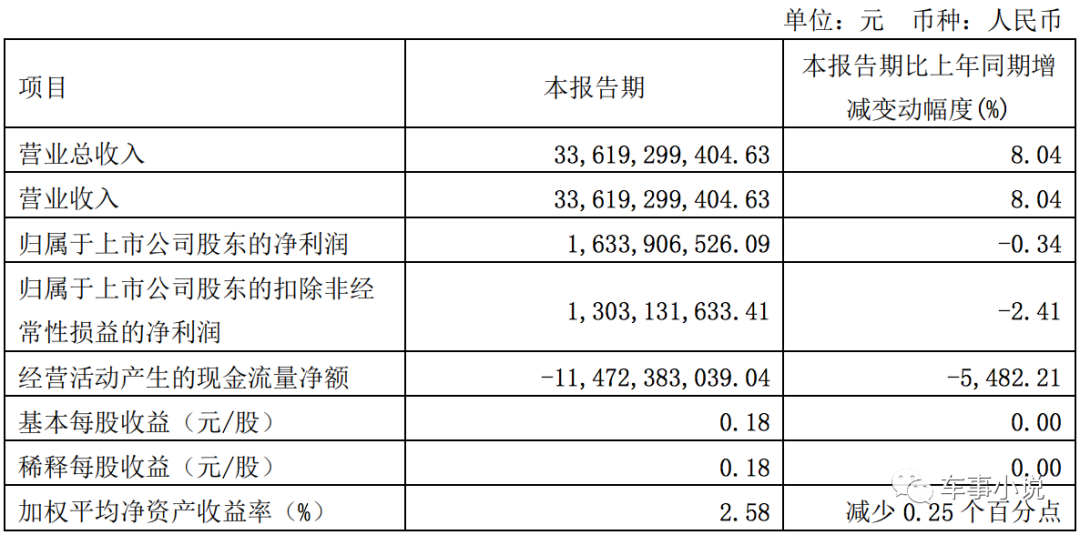 4月22日,长城汽车第一季度财报正式发布。据财报显示,一季度,长城汽车实现营收336.2亿元,同比增长8.04%。归属于上市公司股东净利润为16.34亿元,同比下降0.34%,环比下降8%。