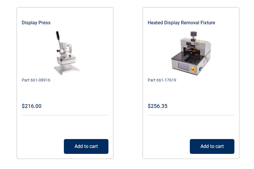 其次,这还只是材料的钱。如果想要更换屏幕,你还需要使用很多维修工具,例如“加热式显示器拆卸装置”,这是一种通过加热取下屏幕的机器,售价256.35美元,约合人民币1695元。目前自助维修授权店售卖的工具共17种,全选之后总价要1054.51美元,约合人民币6927元。