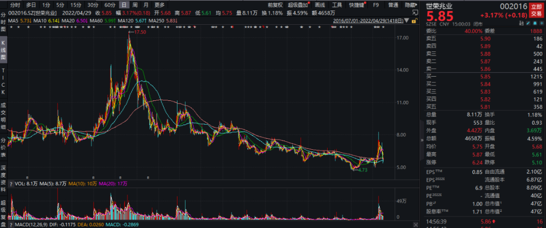 从2016年7月19日梁家荣涉嫌违法公告披露至今,世荣兆业的股价经历了明显的波动。截至2022年4月29日,世荣兆业的总市值为47亿元,较2016年7月19日相比减少了12.16亿元,降幅20.55%。