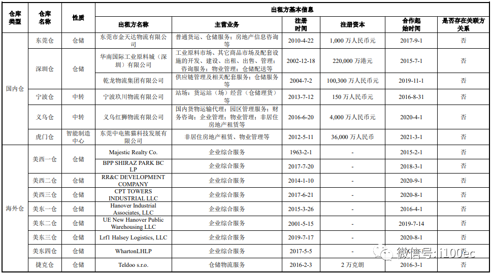 二是国际物流+海外第三方配送。配送环节上,在头程阶段,赛维通过国际物流公司将商品发至公司自营的海外仓。在为终端消费者发货时,选择当地的物流公司进行终端配送。仓储环节上,主要由赛维在海外自行租用仓库。其中,美国仓库由公司进行仓库管理,捷克仓库由第三方进行仓库管理。上述仓库主要职能包括货物在海外的仓储、中转及货物配送等。