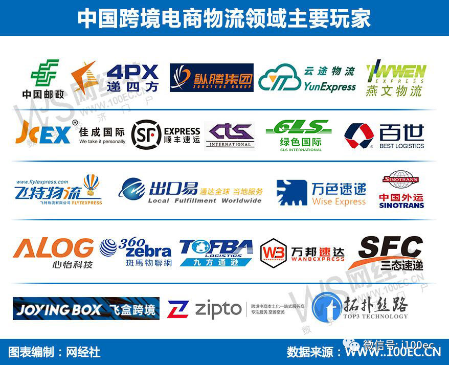 同时还包括跨境电商物流领域的专业选手,该领域中主要的玩家包括:中国邮政、递四方、纵腾集团、华贸物流、燕文物流、佳成国际、顺丰速运、中国外运、百世集团、绿色物流集团、飞特物流、万色速递、万邦速达、心怡科技、斑马物联网、九方通逊、三态速递、至美通等。