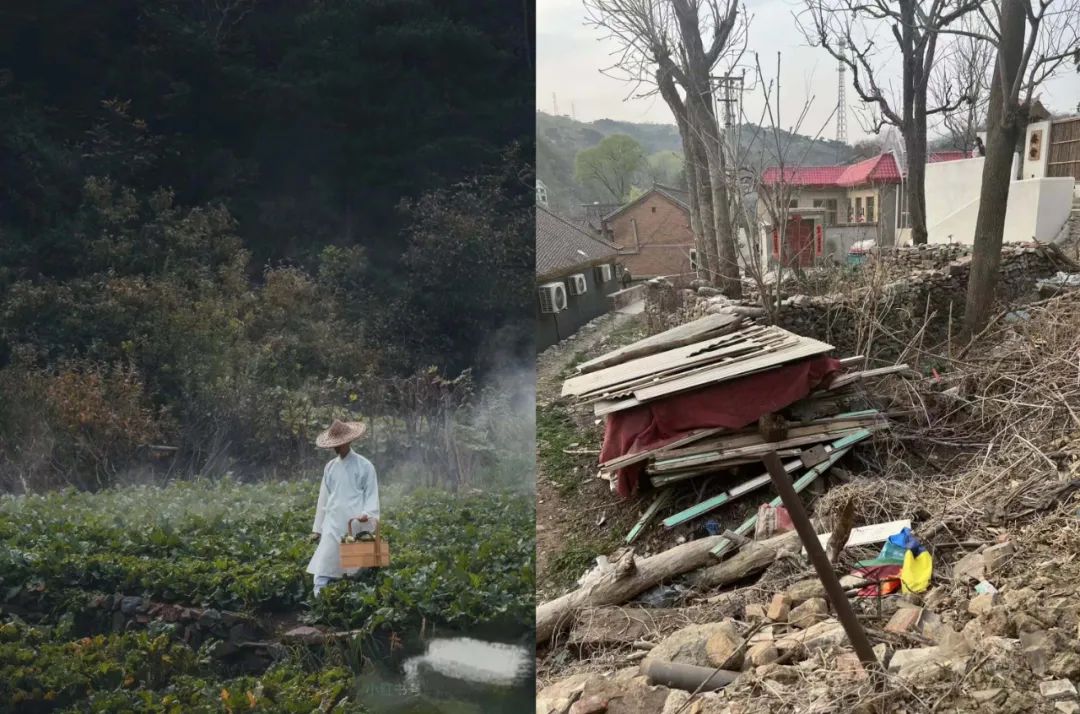 据小维描述,博主口中“归隐深山”的氛围感民宿,实际上只是普普通通的农村民房,停车后需要拿着行李跨过围栏、土坑、土堆抵达。距离民宿不到10米的地方,还有挖掘机在钻地,噪音、尘土的环绕,让她感觉像是到了工地。