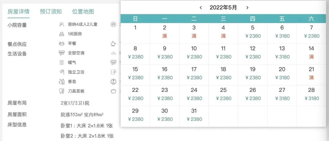 京郊某网红民宿价格日历 来源 / 品牌官网