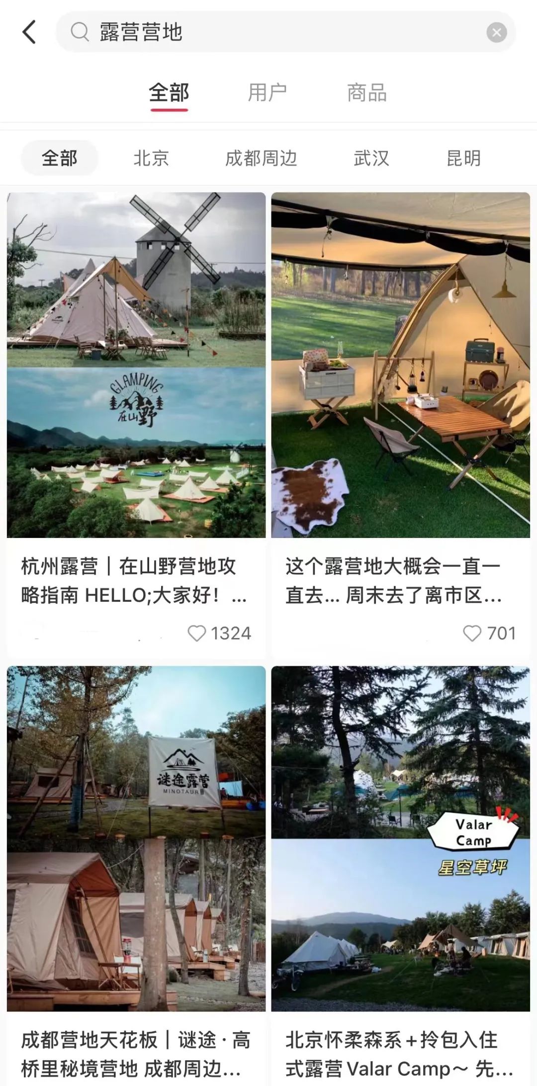 旅行爱好者晶晶习惯在小红书做攻略,“虽然小红书滤镜重,但不得不承认,在这里你能找到大部分目的地景点、餐厅、住宿相关内容,以及现在年轻人爱好的露营、徒步等新兴活动。”