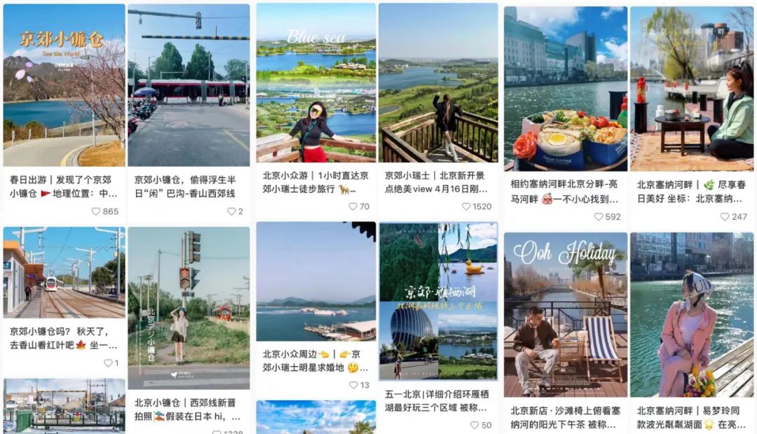 的确,在小红书博主们的文案里,单是北京周边,就有至少十个“京郊小瑞士”、八处“京郊小镰仓”、五地“京郊小奈良”;至于国内版的“京郊小江南”、“京郊小林芝”、“京郊小三峡”,更是数不胜数了。