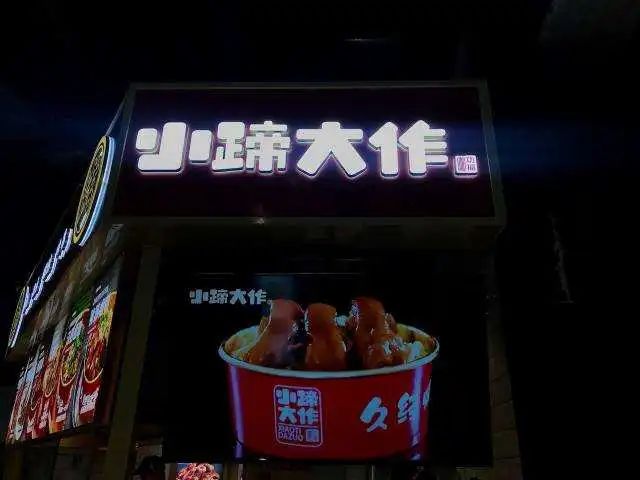 在北京合生汇购物中心的21街区深夜食堂,于众多摊位中一眼便能发现“小蹄大作”这几个字,尽管这是一个面积不大的摊位,但名字很抢眼。谐音梗名称配合硕大的猪蹄图片,引人不禁想要买个烤猪蹄。