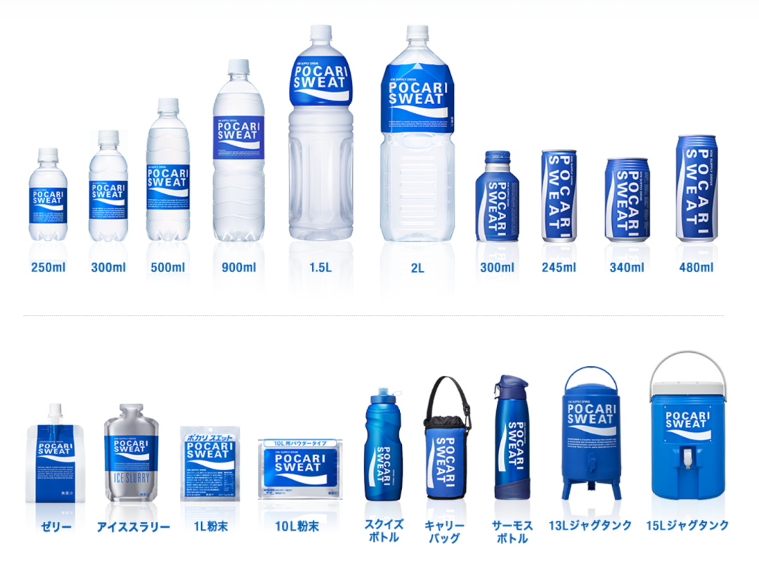 不同容量规格、不同产品形态的宝矿力水特,图片来源:日本宝矿力水特官网