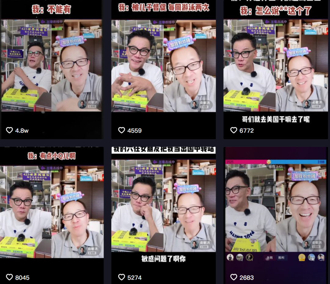 为了给这次直播预热,李国庆连发三条抖音,俞敏洪则没有发任何通告。当晚直播时,两人互相就对方的“往事”提问,大胆且颇具喜感的直播内容随后被做成切片在网上传播并登上多个热搜。