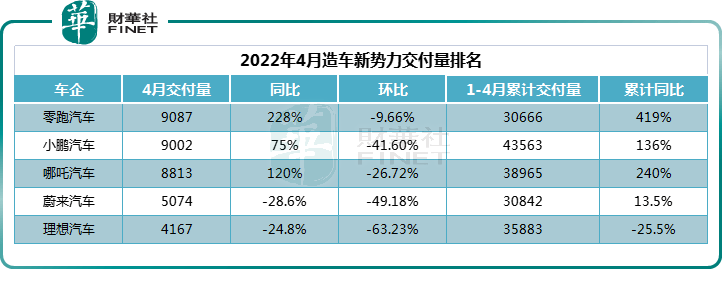 受疫情反复和供应链影响,对于仍处在成长期、抗风险能力较弱的造车新势力来讲,4月无疑是一场“倒春寒”。